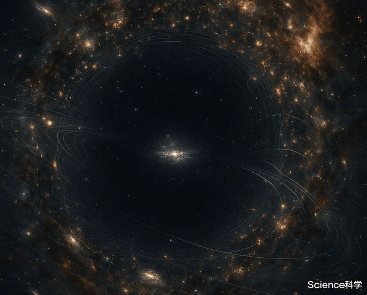 这个空洞直径约10亿光年,内部物质密度比宇宙平均水平低20%。想象一下,宇宙像一块不均匀的蛋糕,我们的“蛋糕块”(空洞)更“蓬松”。由于空洞内物质稀少,周围高密度区域的引力会把空洞边缘的天体“往外拉”,导致我们观测到的星系远离速度比实际更快,仿佛宇宙膨胀在“加速”。