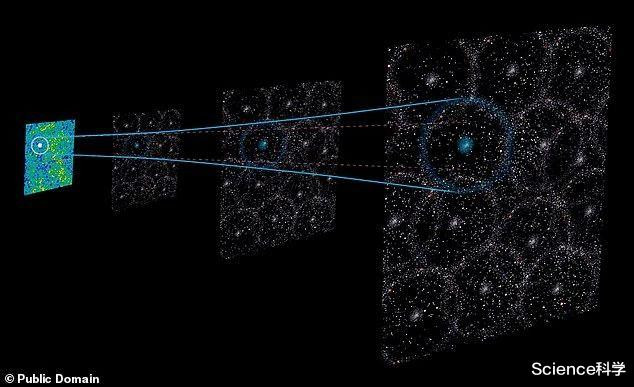 大爆炸后几秒内,宇宙是一团由光子和重子(质子、中子)组成的超高温等离子体。引力挤压这团“宇宙热汤”时,会产生类似声波的振动,这些振动随宇宙冷却“冻结”,在星系分布中留下规律的“涟漪”(BAO)。如果我们真的在快速膨胀的空洞里,这些“涟漪”会比均匀宇宙中显得更密集。